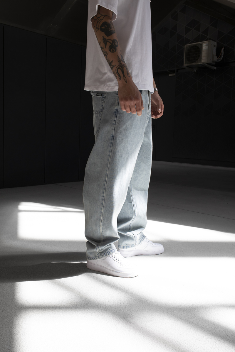 Spodnie Baggy Jeans Slang Jasnoniebieskie to doskonała baza wyjściowa dla innych elementów stroju codziennego, także produkowanych przez Mass Denim jak choćby bluzy bez kaptura pokroju tej w kolorze szarym a więc Crewneck Base; kurtki zarówno jesienne / zimowe jak i wiosenne czy poszczególne nakrycia głowy, charakterystyczne dla ciepłych miesięcy czapki bucket hat – choćby modele Layer, biały bucket hat Patch czy przydatne w mroźne dni kominiarki balaclava.