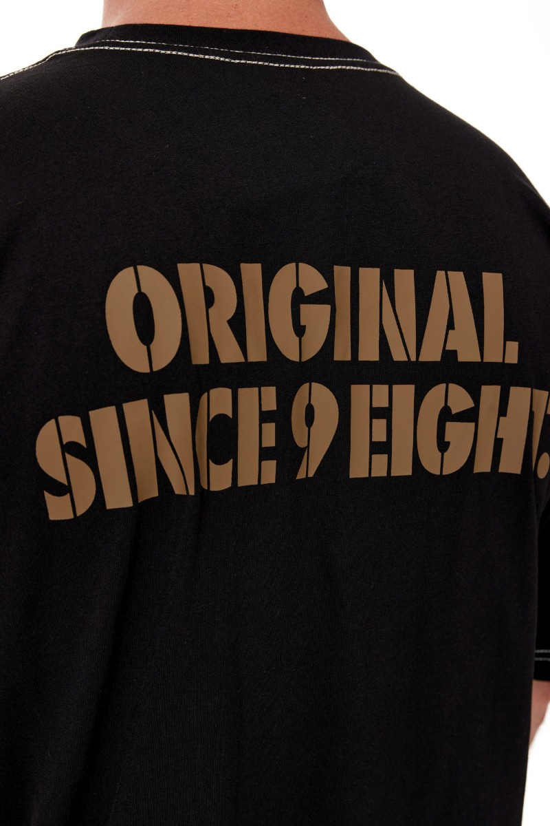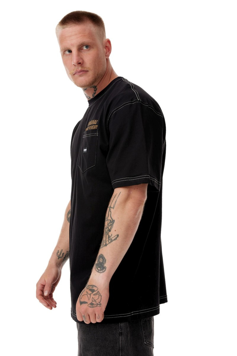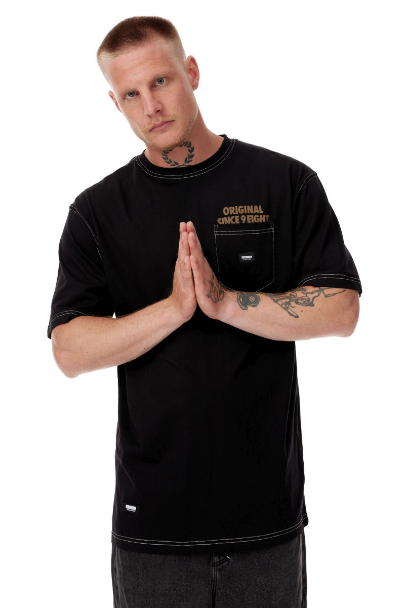 Koszulka Original od Mass Denim. Na lewym froncie kieszonka z brandową wszywką. Ozdobne aplikacje w formie nadruków. Na dole brandowa wszywka.
