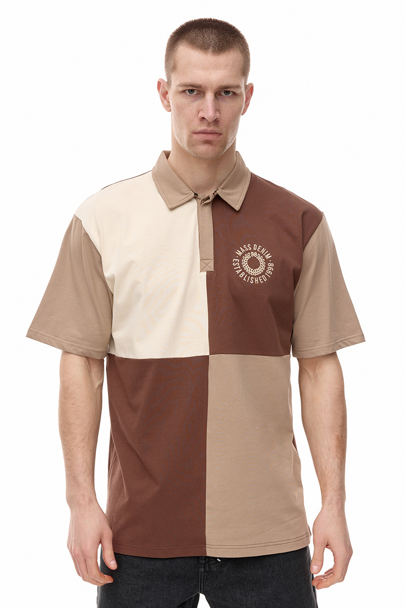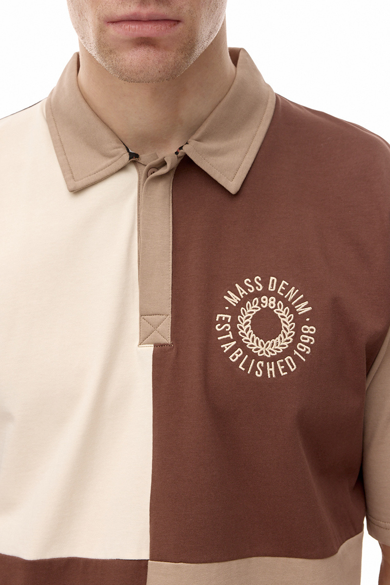 Mass Denim Elementary Polo. Koszulka z kołnierzykiem rozpinanym guzikami. Na lewym froncie aplikacja z logotypem i nazwą marki w postaci haftu. Na dole koszulki brandowa wszywka.