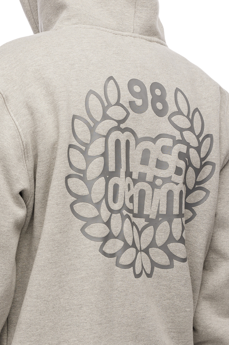 Bluza Mass Denim Base Back. Bluza kangurka z kapturem ściąganym sznurkiem i dużą kieszenią. Na lewym froncie i plecach aplikacje z klasycznym logotypem marki w postaci nadruków. Dół i rękawy wykończone elastycznymi ściągaczami. Na dole bluzy brandowa wszywka.