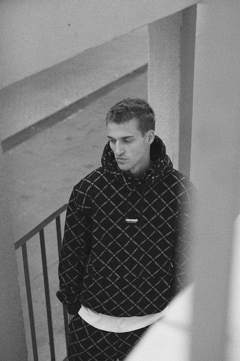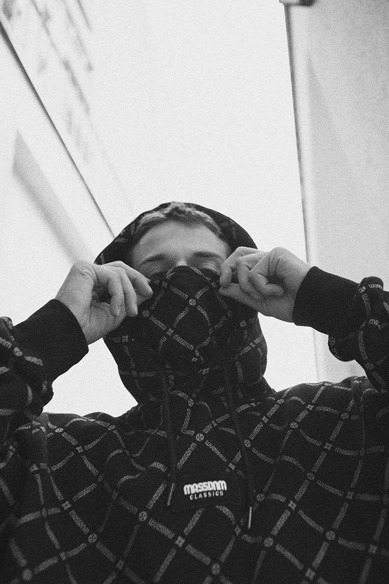 Bluza Mass Denim Monogram utrzymana jest w klasycznym kroju kangurki z kapturem regulowanym sznurkiem i praktyczną kieszenią z przodu. Powierzchnię materiału zdobią inicjały marki, a centralny haft z jej nazwą podkreśla streetwearowy charakter. Dół oraz mankiety wykończono elastycznymi ściągaczami, a wysoki kołnierz zapewnia dodatkową ochronę przed zimnem. Całość uzupełnia subtelna, brandowa wszywka na dole bluzy.