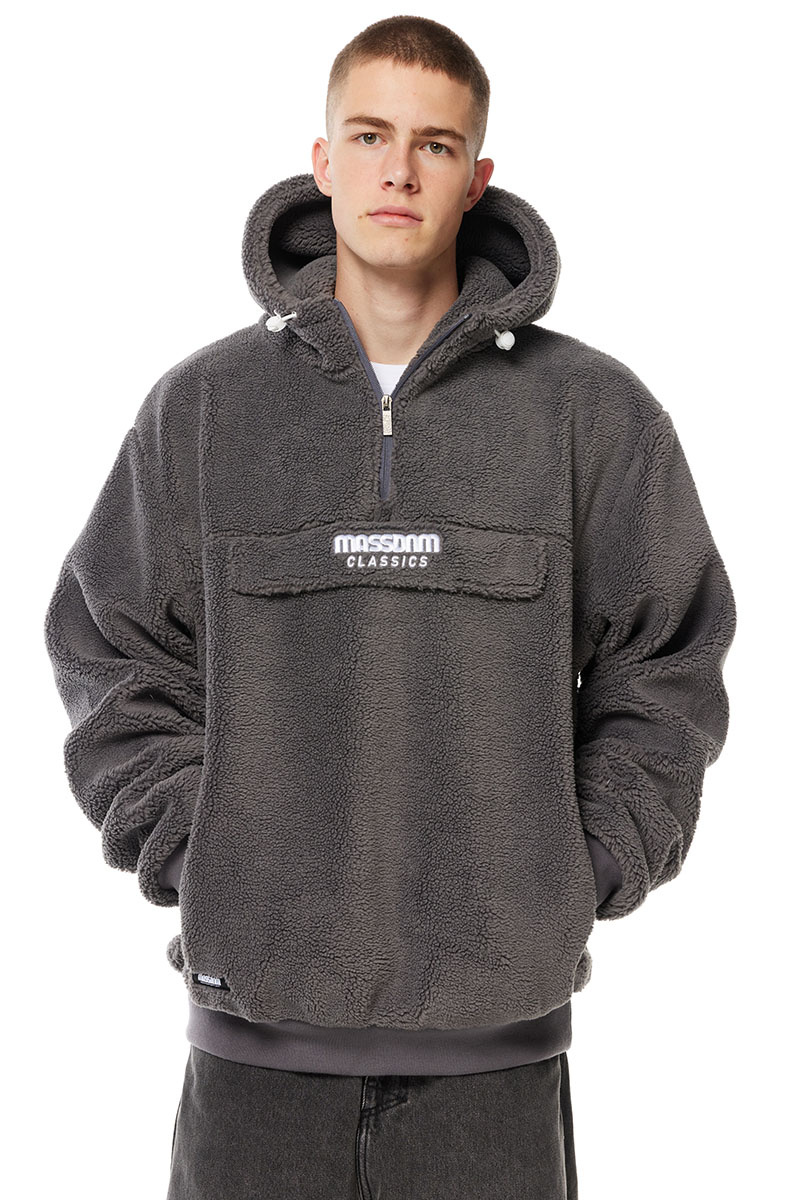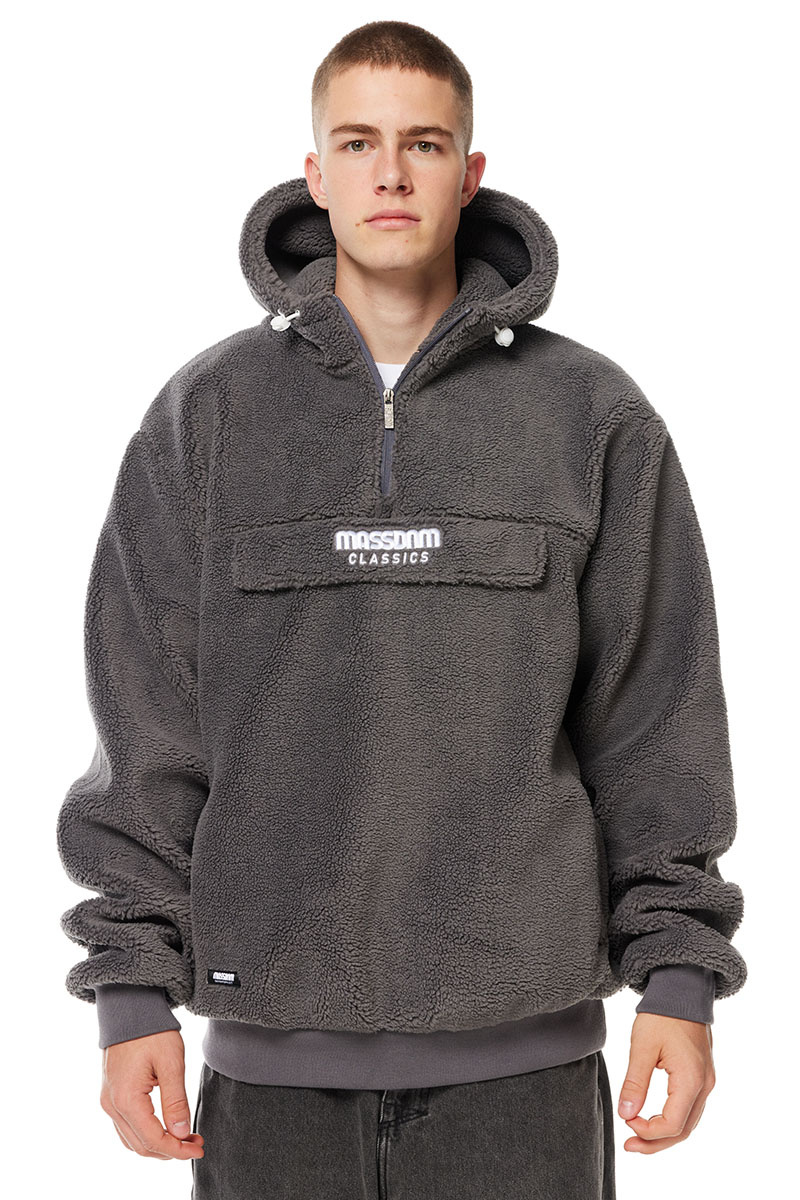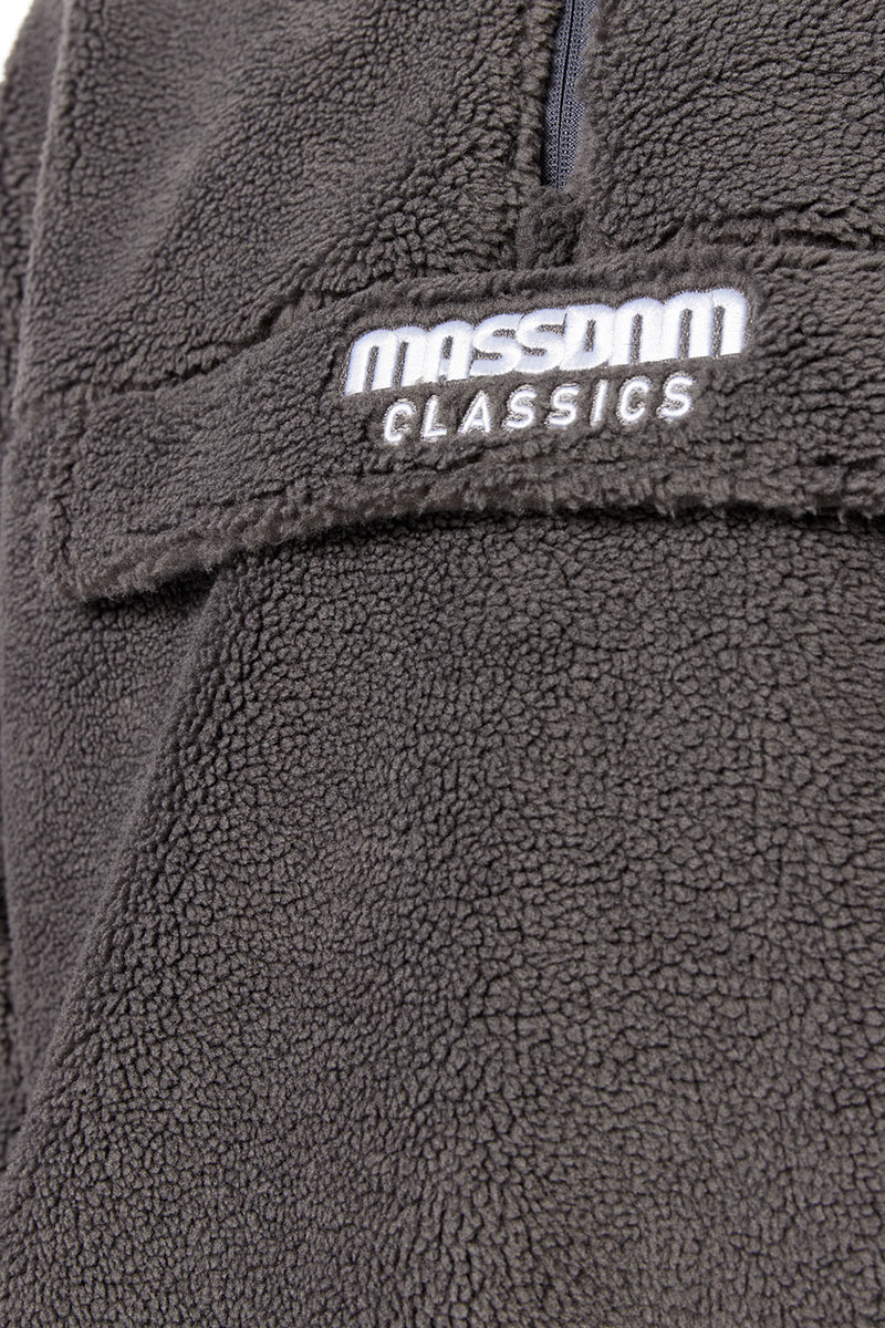 Kurtka Mass Denim Frontside 2.0 to model typu anorak, wkładany przez głowę i rozpinany suwakiem do wysokości mostka. Wyposażona w kaptur regulowany sznurkiem oraz praktyczną kieszeń na froncie zapinaną na zamek. Wykonana z miękkiego, ciepłego polaru, który gwarantuje komfort w chłodne dni. Rękawy i dół wykończono elastycznymi ściągaczami, a na przodzie umieszczono haftowaną nazwę marki.