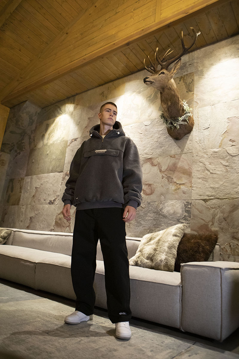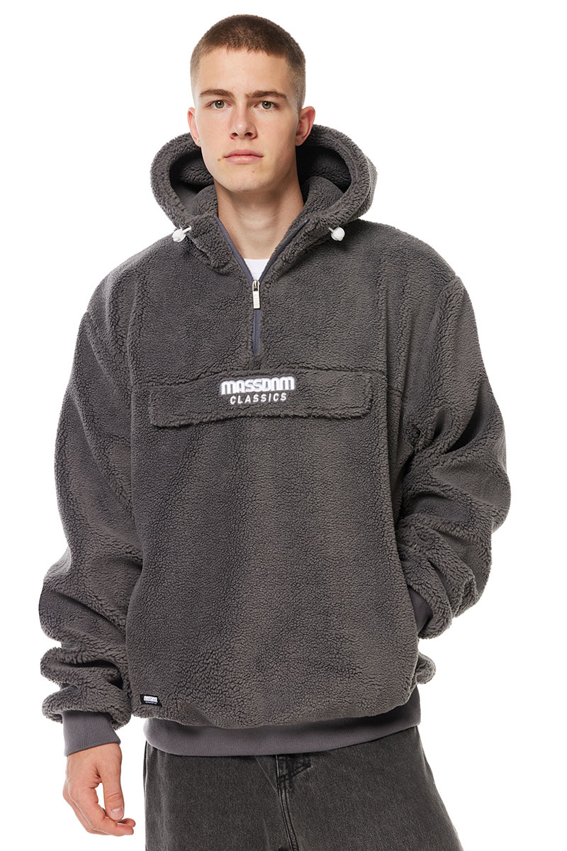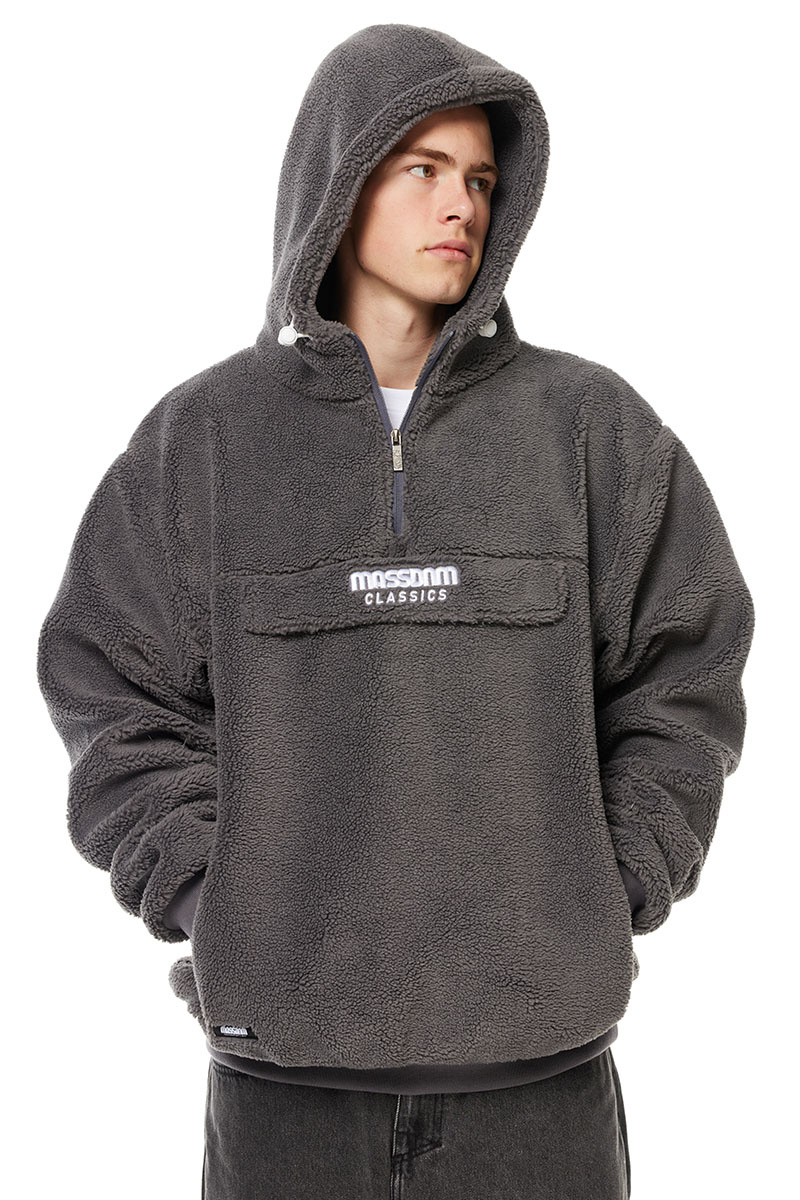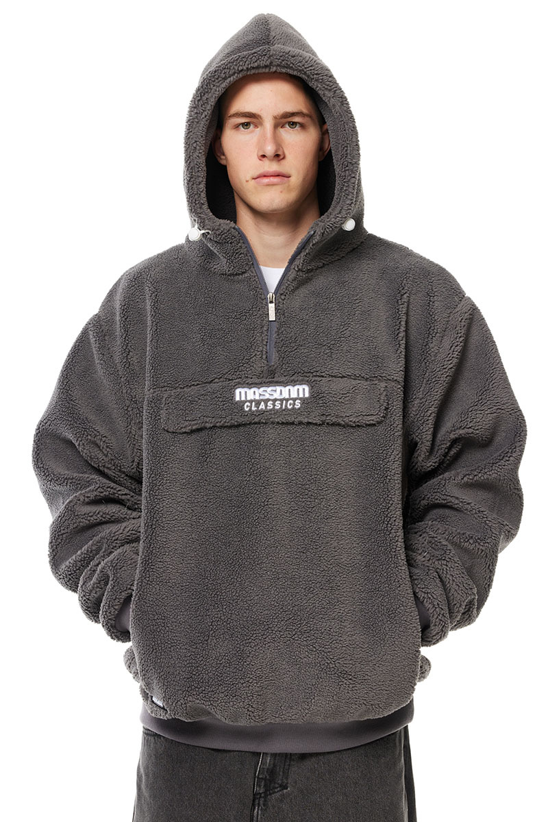 Kurtka Mass Denim Frontside 2.0 to model typu anorak, wkładany przez głowę i rozpinany suwakiem do wysokości mostka. Wyposażona w kaptur regulowany sznurkiem oraz praktyczną kieszeń na froncie zapinaną na zamek. Wykonana z miękkiego, ciepłego polaru, który gwarantuje komfort w chłodne dni. Rękawy i dół wykończono elastycznymi ściągaczami, a na przodzie umieszczono haftowaną nazwę marki.
